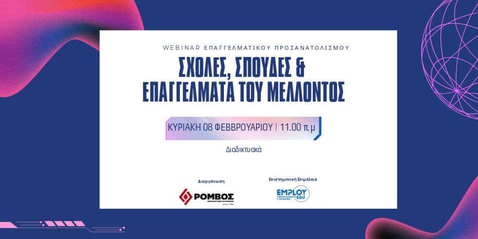 Διαδικτυακή Ημερίδα Επαγγελματικού Προσανατολισμού «Σχολές, Σπουδές & Επαγγέλματα του Μέλλοντος» Η επιλογή σπουδών και...